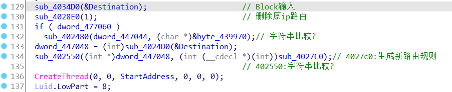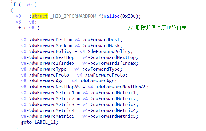 通过函数sub_4028E0把原来的 IP 路由表删掉